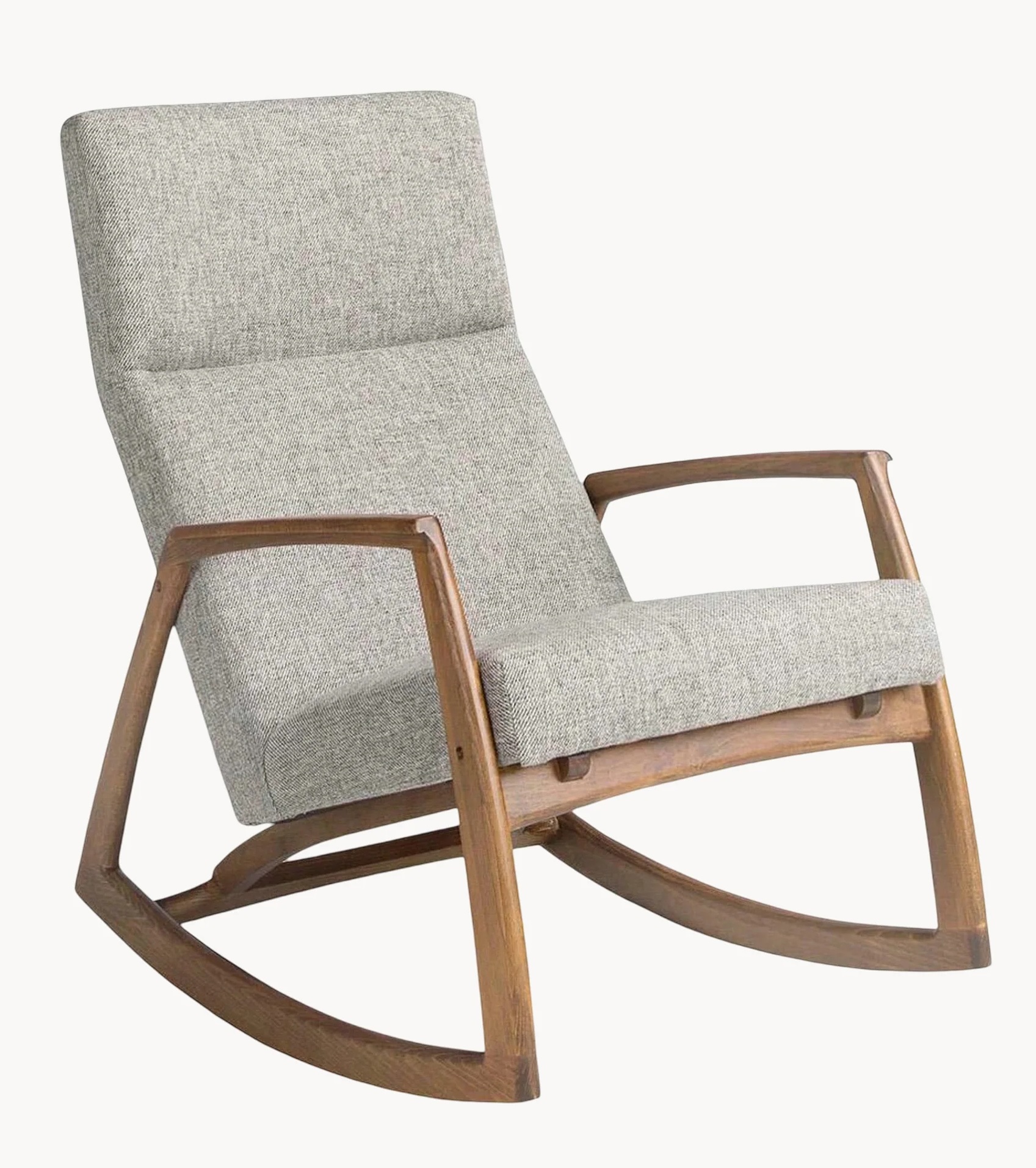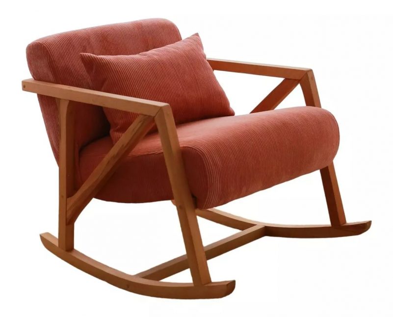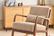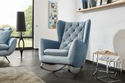 Houpací křesílko Skovde má hladkou kostru z kaučukového dřeva, pohodlný pružinový sedák a lze ho kombinovat i s nehoupací verzí Skovde. 4 699 Kč, Beliani