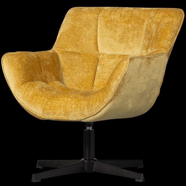 Otočné křesílko Wibo holandské značky Woood si získá pozornost příjemným žinylkovým potahem a stabilní kovovou základnou. 10 620 Kč, Iodesign