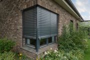 Venkovní žaluzie snižují náklady na chlazení domu o 50 až 70 %. Barevný odstín si můžete zvolit podle vašich preferencí. Žaluzie jdou ovládat pomocí mobilu i napojit na centrální řízení domu. V aplikaci se dá nastavit, aby se žaluzie roztáhly, když ráno vstáváte do práce, a po odchodu se zase samy zatáhly. Další variantou jsou nejrůznější čidla – sluneční, teplotní či větrné. Díky nim stínicí technika sama reaguje na aktuální počasí. Foto Vekra