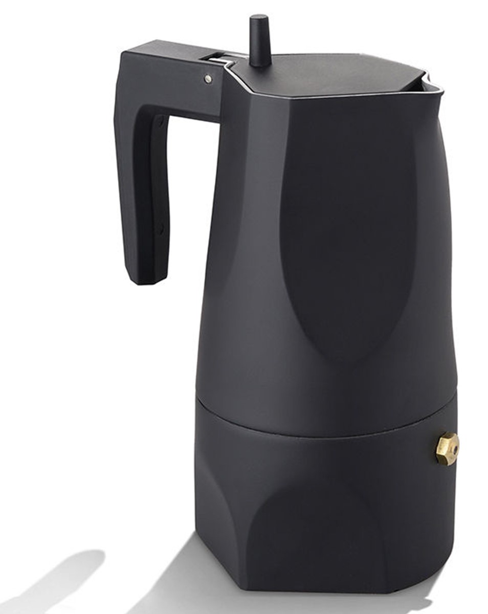 Ergonomický moka kávovar Alessi Ossidiana Black umožňuje přípravu tří šálků kávy a dělá se i ve větší hliníkové verzi. 2 028 Kč, Casa bella