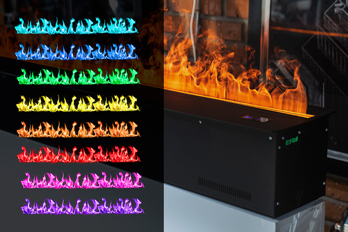 Různé barvy studeného ohně nabízí vestavný parní krb FireSpa 600 mm. 47 190 Kč, Foto Alvi Praha