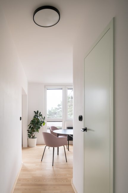 „Z klasického panelákového bytu 3 + 1 s umakartovým jádrem jsme vytvořili plynulý čistý prostor bez zbytečností,“