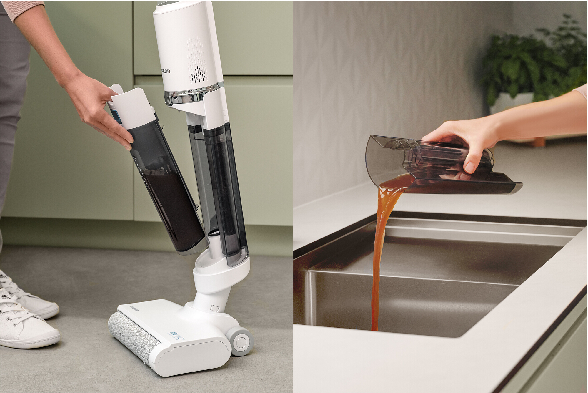 Podlahová myčka Aquino SVW 5010WH nabízí funkci Wet & Dry pro mokré a suché vysávání. Má oddělené nádržky na čistou a špinavou vodu, vysokorychlostní rotační kartáč se tak čistí průběžně. Po práci si přístroj sám vyčistí kartáč a potrubí díky funkci Self-Cleaning. 6 999 Kč, Foto Sencor
