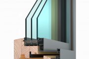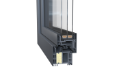 Řez profilem Kontur Plus: stavební hloubka 82,5 mm, rám intenzivně zateplen technologií IKD®, trojsklo IZOS v hluboké zasklívací spáře. Ug = 0,5 W/m2K. Foto Okna Vorlíček