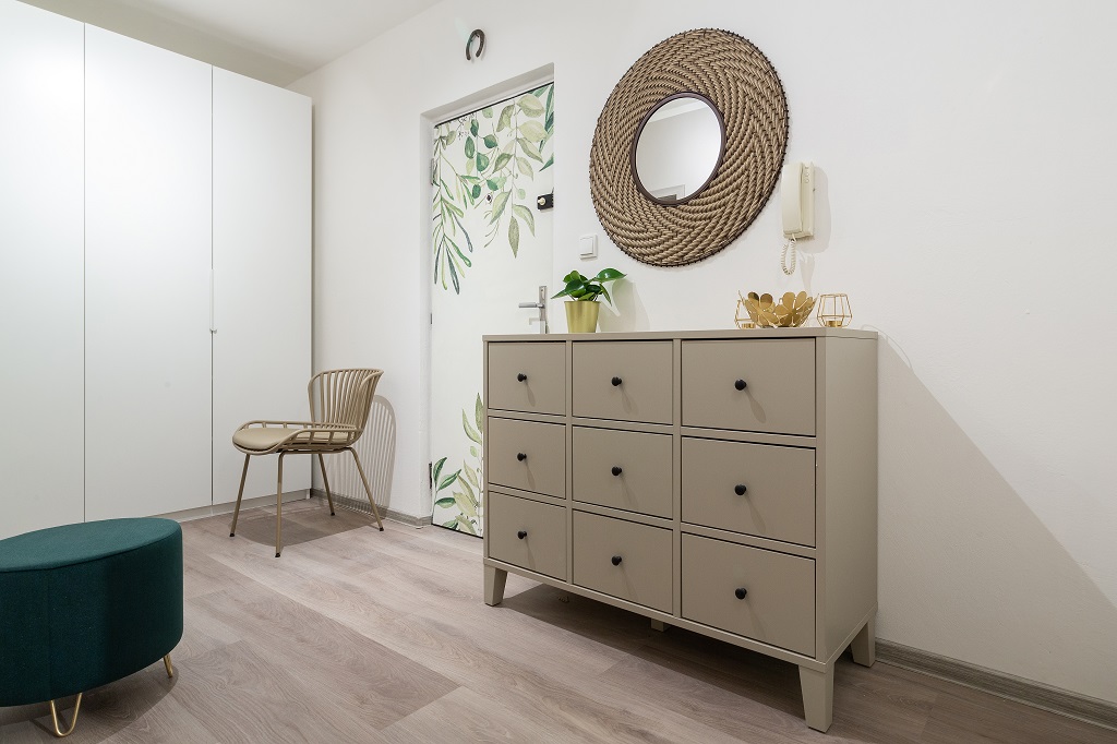 Postupem času si uvědomili, že část prací zvládnou svépomocí. Nešlo jen o úsporu nákladů, ale také o snížení závislosti na termínech řemeslníků a celkově klidnější průběh rekonstrukce. Jedním z prvních kroků byla výměna podlahy. Starý koberec už nevyhovoval a právě podlaha nabízí výraznou změnu vzhledu i atmosféry celého prostoru.