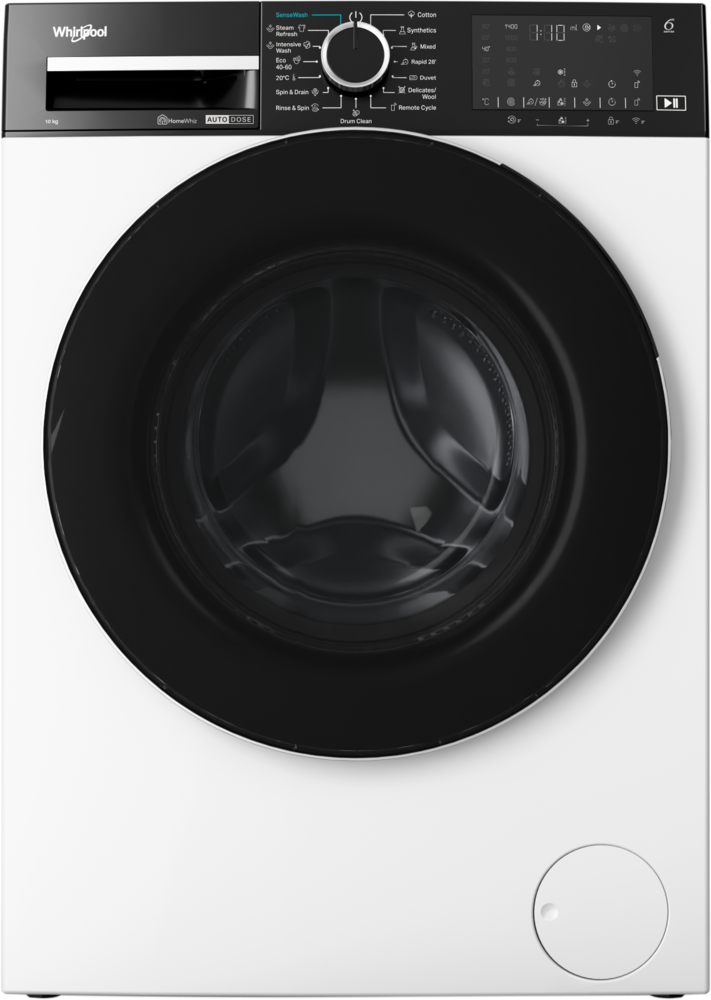 Předností této pračky Whirlpool z nové řady je rozhodně kombinace moderního designu a špičkových funkcí. Prostorný buben s kapacitou 10 kg pojme i třeba velké várky prádla pro celou rodinu třeba po návratu z dovolené. Technologie 6. SMYSL SenseWash automaticky přizpůsobí teplotu i délku cyklu pro dokonalou péči o prádlo. Nechybí ani funkce AdaptiveWash, která rozpozná typ tkaniny a podle toho optimalizuje celý cyklus, AutoDose pro automatické dávkování pracího prostředku, a SteamRefresh, která osvěží prádlo párou během několika minut.