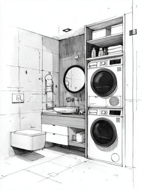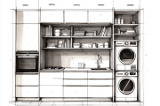 Moderní interiéry stále častěji spojují funkční zóny do jednoho vizuálně sjednoceného celku. Otevřená kuchyň s integrovanou pračkou a sušičkou není už jen řešení pro malé byty – je to designové rozhodnutí, které reflektuje současný životní styl. Díky kompaktním rozměrům je možné spotřebiče umístit nad sebe do jedné vertikální linie a obklopit je nábytkem na míru. Police nad spotřebiči lze využít prakticky i esteticky – skvěle poslouží pro decentně uspořádané čisticí prostředky v designových boxech, ale i pro vystavení vonných difuzérů, stylových karaf nebo výběrových kuchařských knih. Skryté úchytky, sladěné dekory dvířek a chytré členění otevřených a uzavřených zón působí čistě, promyšleně a maximálně funkčně. Ať už máte k dispozici malý byt nebo otevřenou kuchyň s obývacím prostorem, řešení s integrovanou věží se stane nenápadným, ale důležitým prvkem každodenního pohodlí.
