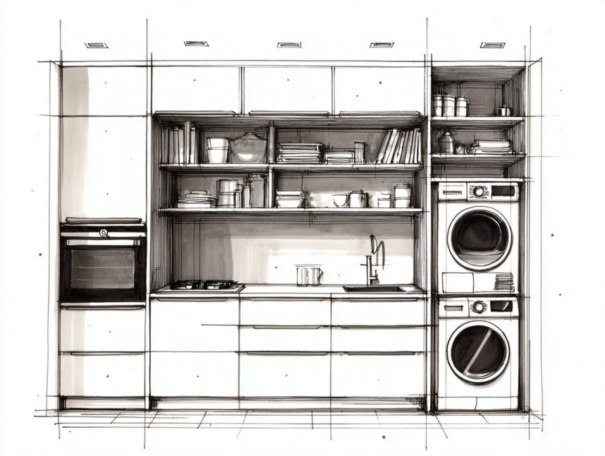 Zóny, které dýchají: Jak elegantně zapojit pračku a sušičku do kuchyně