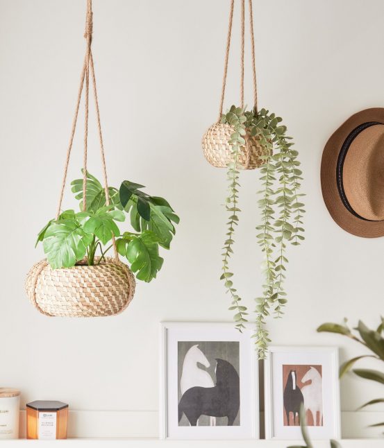 12. Závěsný koš poslouží jako vkusný obal na květináč třeba pro pokojovky s atraktivními listy. 629 Kč, Beliani