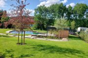 V každoroční soutěži Koupací jezírko roku, vyhlášenou Asociací biobazénů a jezírek (ABAJ), získalo v roce 2022 třetí místo jezírko, které bylo dodatečně začleněno do jednoduše komponované zahrady. Vodní hladinu zde lemuje úzké valounové pole, tvořící výraznou linii, oddělující trávník. Koupací část ohraničuje dřevěný lem. Vodní plochu doplňují dvě terasy, spojené kamennými schody, a pergola. Foto abaj.cz